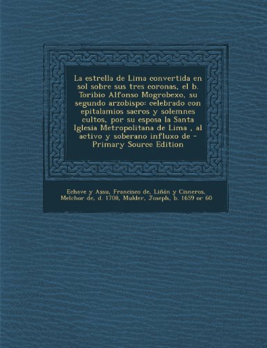 Download La estrella de Lima convertida en sol sobre sus tres coronas, el b. Toribio Alfonso Mogrobexo, su segundo arzobispo: celebrado con epitalamios sacros ... de Lima , al activo y soberano influxo de free in PDF and EPUB format. Download ... Download La estrella de Lima convertida en sol sobre sus tres coronas, el b. Toribio Alfonso Mogrobexo, su segundo arzobispo: celebrado con epitalamios sacros ... de Lima , al activo y soberano influxo de PDF for your kindle, tablet, IPAD, PC or mobile